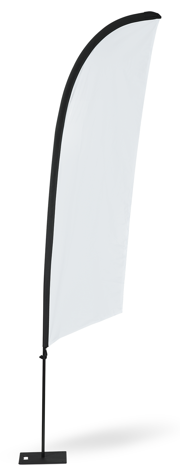 La voile est composée d'un tissu 100% polyester - 115 g/m² avec un tissage : 50% trame et 50% chaîne. Votre beach flag est cousu en double point arrière avec du fil spécial pour une utilisation en extérieur. Un ourlet double pli d'une largeur de 10 mm renforce la structure de votre oriflamme publicitaire avec une double couture symétrique de 7 mm (à 1,5 mm des bords). La largeur du point de couture est de 5 mm. Le manchon est renforcé par une bande de tissu uni noir (largeur : 30 mm). Votre oriflamme personnalisable est résistant à l'eau et au vent. Inaltérable et lavable, il bénéficie d'un traitement de surface anti-pollution.