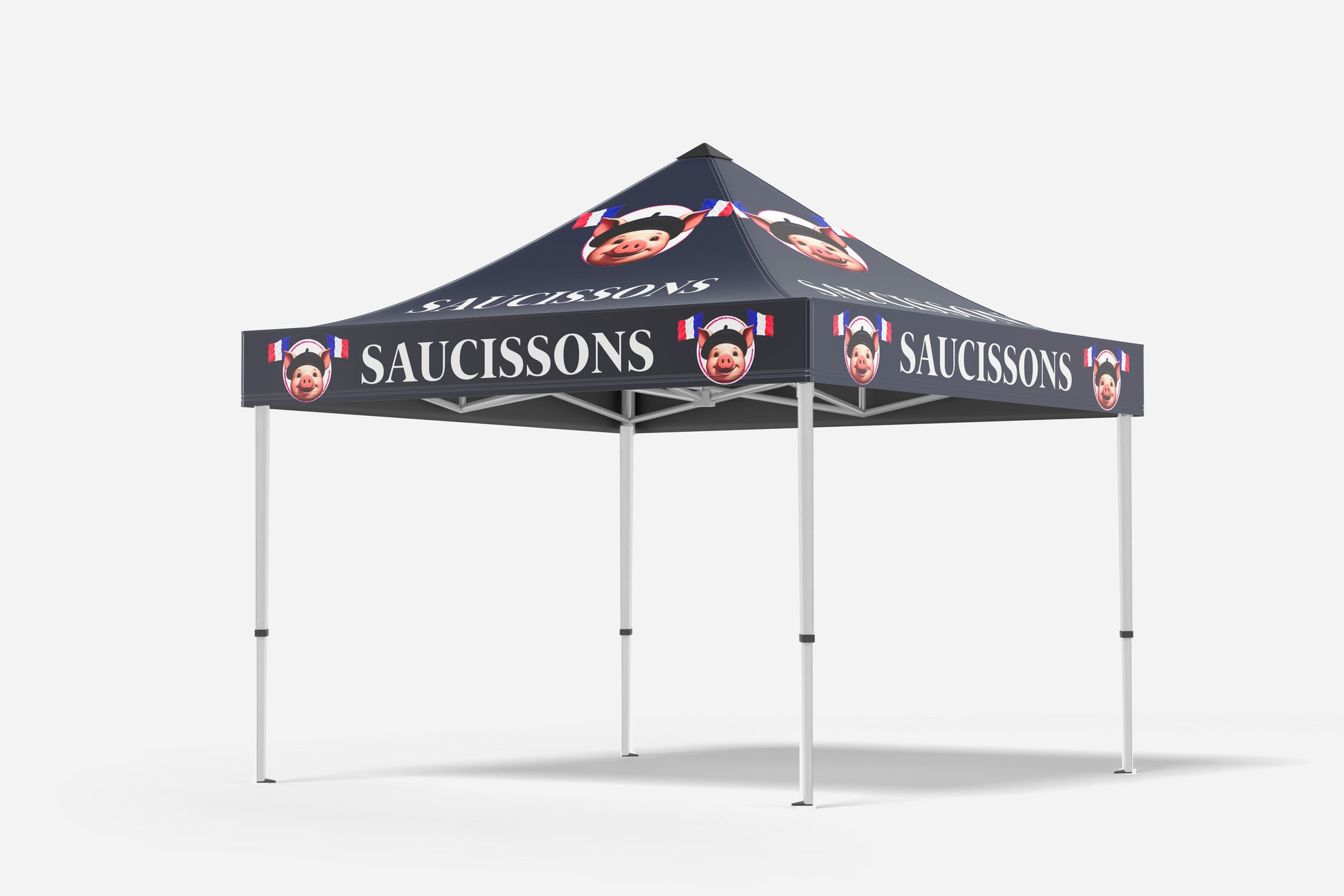 Découvrez la dernière innovation chez Flag Minute : la tente d'exposition pliable dédiée au Saucisson (barnum). Faites la différence lors de vos futurs salons ou foires expo avec notre stand spécialement élaboré pour capter le regard des passants et dynamiser vos ventes de charcuterie. Il mettra en avant vos produits régionaux, votre savoir-faire artisanal autour de la cochonnaille, et la provenance de vos élevages. Ce barnum combine avec design et robustesse, vous proposant un lieu de vente distinctif. la personnalisation peut etre compléter sur simple demande. Cette tente pliable est disponible aux dimensions 3X3m, 3X4,5m et 3X6m. Nos toiles sont imperméabilisées (option) . Livraison standard ou en express (option). Notre tente d'exposition est prévue pour une utilisation ponctuelle, elle n'est pas prévue pour une utilisation intensive. Photo d'illustration/photo non contractuelle